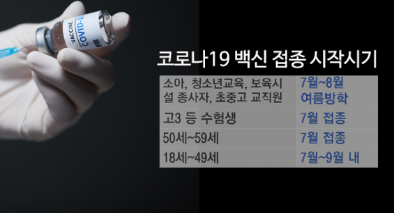 만 18∼49세(1972년 1월 1일∼2003년 12월 31일 출생) 일반인 대상의 코로나19 백신 1차 접종이 다음 달 26일부터 진행됩니다. 이에 앞서 같은 연령층 200만 명을 대상으로 한 지방자치단체의 자체 접종은 다음 달 17일부터 시행되고 발달장애인, 선원, 노숙인 등을 대상으로 한 접종도 이뤄집니다. 8∼9월 접종을 마치면 전체 국민의 70%인 3천600만 명에 대한 1차 접종이 우선 마무리됩니다. 정부는 이를 토대로 11월까지 집단면역을 형성하겠다는 계획입니다.